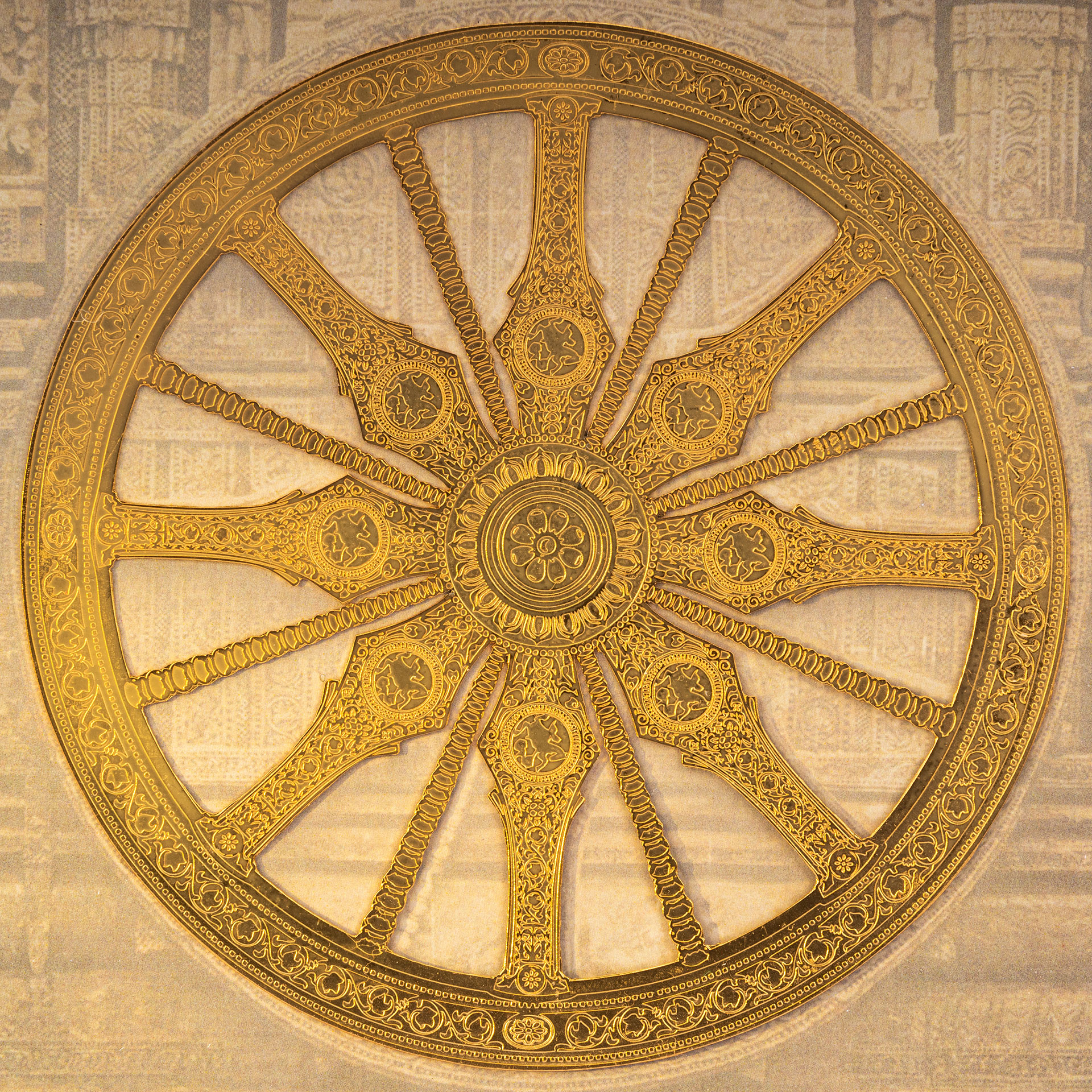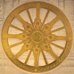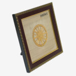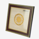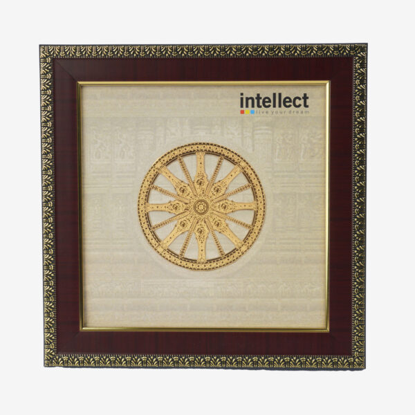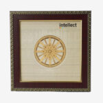 This piece of art captures the Konark Wheel at the Sun Temple in Orissa, in all its glory. This art work is created using a traditional art form known as Thanjavur paintings is dated back to 11th Century in Southern India. The painting attempts to capture the intricacy of the chariot’s wheel.